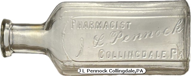 Embossed pharmacy/medicine bottles from Delaware County PA. This is only a representation of a particular version of a bottle. These bottles have many sizes and there are too many to show every size. There may be some bottles available for trade. Contact us . Click on the underlined name to see a picture of the bottle.