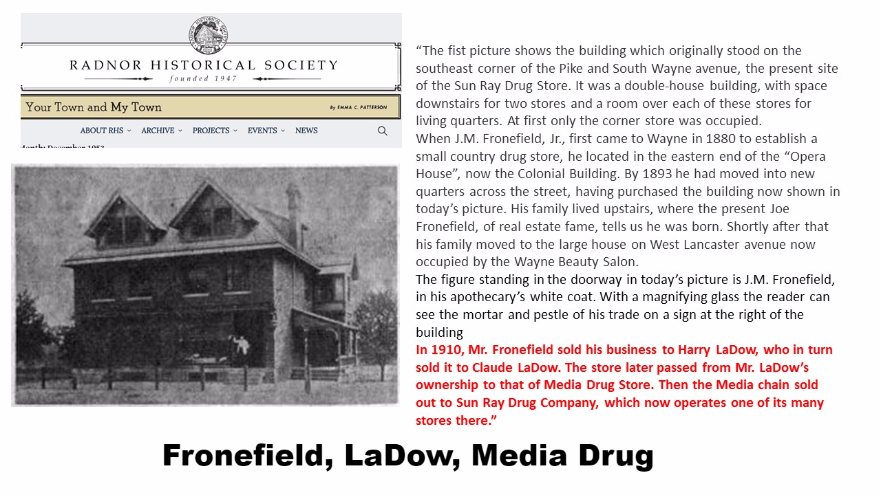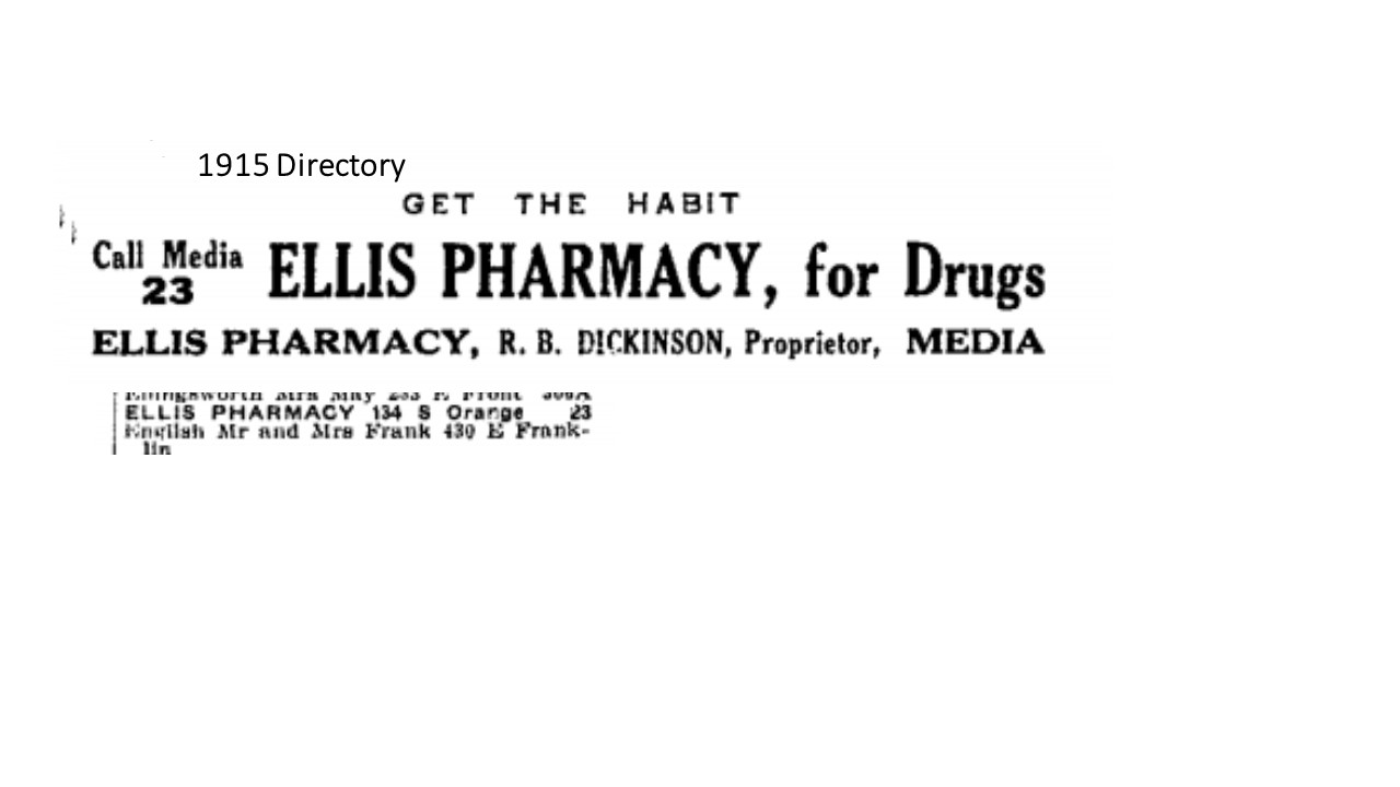 Park Pharmacy Third & Highland Thurlow , PA ( now part of Chester) up to 1911 WC Kelly then Harry Darr