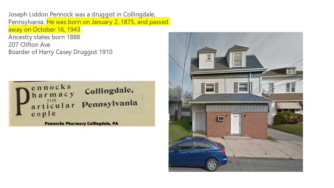 J L Pennock 207 Clifton Ave info Collingdale , PA