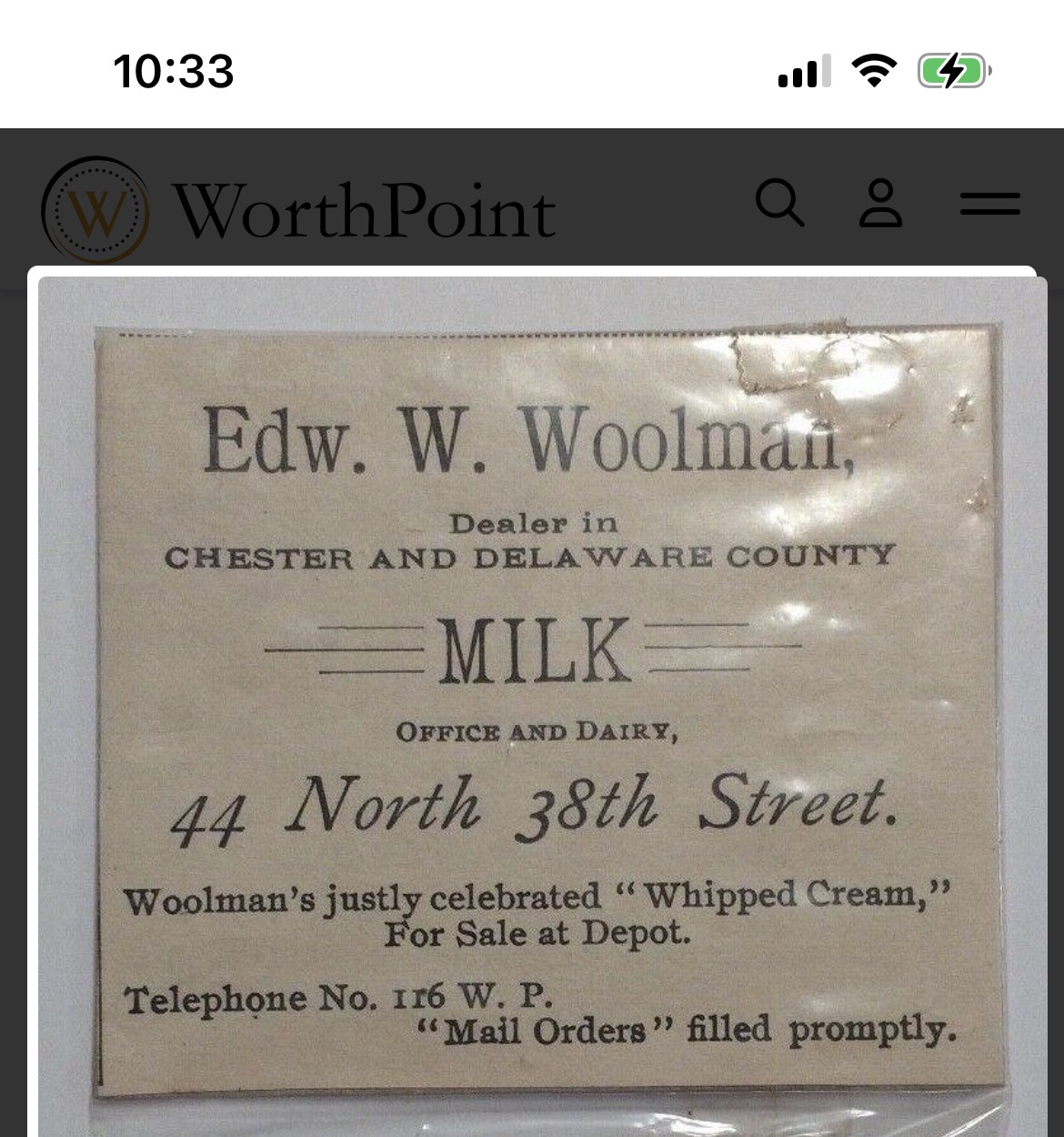 - Roselyn Farm Dairy West Chester , PA ( had a license to sell in Swarthmore, PA)